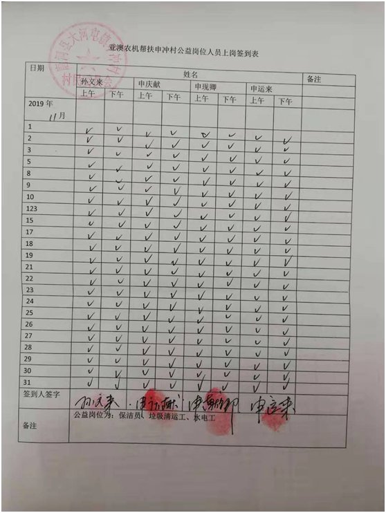 除此之外,我公司聯(lián)合村委會(huì)照顧一些特別貧困但有行動(dòng)能力的老人為村部垃圾清運(yùn)、水電維修、村落清潔等,并為此購買公益崗位,每月定期給這些公益崗位發(fā)放工資500元/個(gè)月,以確保他們的正常生活。這一決定從2018年5月至今已經(jīng)實(shí)行了一年半時(shí)間,累計(jì)發(fā)放公益崗位工資3.1萬元。