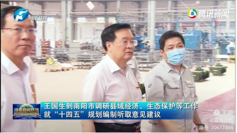 河南省委常委、省委秘書長穆為民陪同調(diào)研,亞澳南陽農(nóng)機總經(jīng)理史炳哲介紹相關(guān)情況!