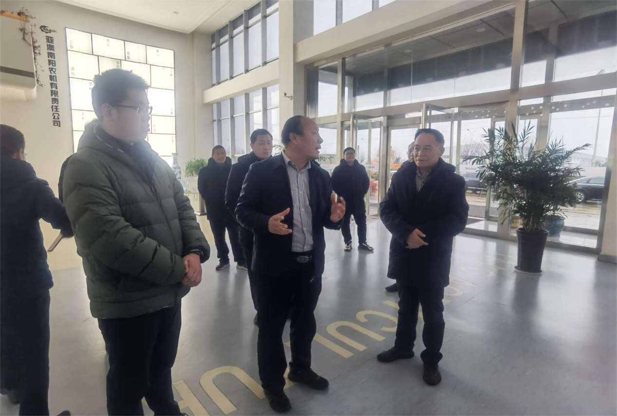 2023年12月15日,國務(wù)院國資委三農(nóng)院士專家組副組長陸永忠院士在唐河縣政府副縣長方明帶領(lǐng)下來到亞澳農(nóng)機(jī)走訪調(diào)研,國電投融晟(廣東)新能源有限公司副總經(jīng)理洪萬斌 、國電投融晟(廣東)新能源有限公司項目總監(jiān)于宏磊等陪同調(diào)研。