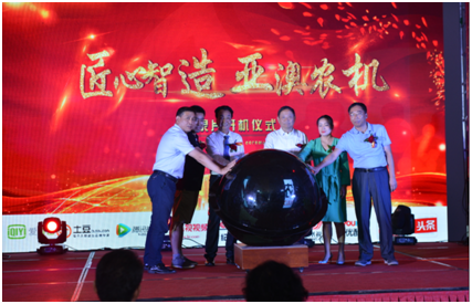 7月11日上午,CCTV發(fā)現(xiàn)之旅《匠心智造》欄目亞澳農(nóng)機(jī)開(kāi)機(jī)儀式隆重舉行。匠心欄目組監(jiān)制李會(huì)晴、導(dǎo)演張軍賢、中國(guó)農(nóng)業(yè)機(jī)械化協(xié)會(huì)劉憲會(huì)長(zhǎng)、中國(guó)農(nóng)機(jī)工業(yè)協(xié)會(huì)劉偉華副秘書(shū)長(zhǎng)、農(nóng)業(yè)部農(nóng)機(jī)推廣總站劉司法處長(zhǎng)、中國(guó)農(nóng)機(jī)流通協(xié)會(huì)馬錚處長(zhǎng)、中國(guó)農(nóng)機(jī)安全報(bào)社王建鵬副社長(zhǎng)、陜西省農(nóng)業(yè)機(jī)械化管理局上官永副局長(zhǎng)、甘肅省農(nóng)業(yè)機(jī)械質(zhì)量管理總站張恩貴站長(zhǎng)、山西省農(nóng)機(jī)推廣站張玉峰站長(zhǎng)、陜西省農(nóng)業(yè)機(jī)械鑒定站王延宏站長(zhǎng)、陜西省農(nóng)業(yè)機(jī)械研究所賀功民所長(zhǎng)、戶(hù)縣人民政府毛安副縣長(zhǎng)、西安灃京工業(yè)園黨工委楊波書(shū)記、西安亞澳農(nóng)機(jī)股份有限公司董事長(zhǎng)史可器、總經(jīng)理史森強(qiáng)及各地經(jīng)銷(xiāo)商、給供應(yīng)商等300余人參加開(kāi)機(jī)儀式.