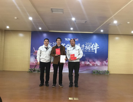 年度先進(jìn)個人獲得者為石強(qiáng)、陳朝龍、王文飛、王欣、楊常林、寧浩、鄭新春、田生文、白拴禮、趙自學(xué),優(yōu)秀班組長周長金,獎品Aksen旅行箱