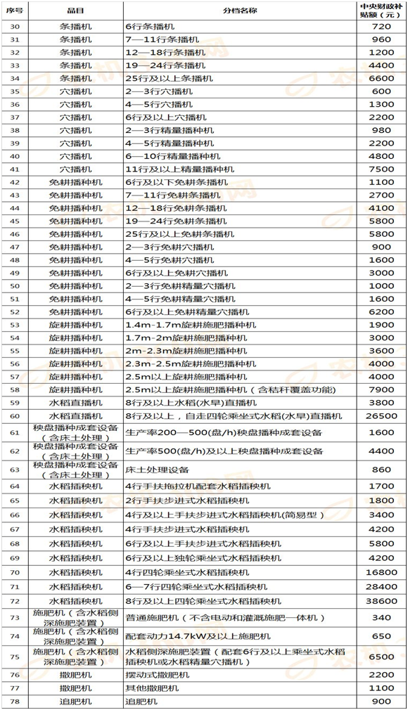 "備注:對穴播機品目先按排種器形式分檔,其中精量排種器包括氣力式和達(dá)到精量要求的指夾式,其他列為普通型式;